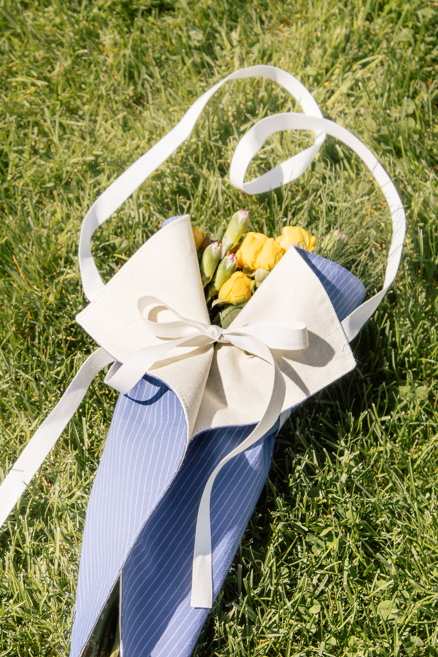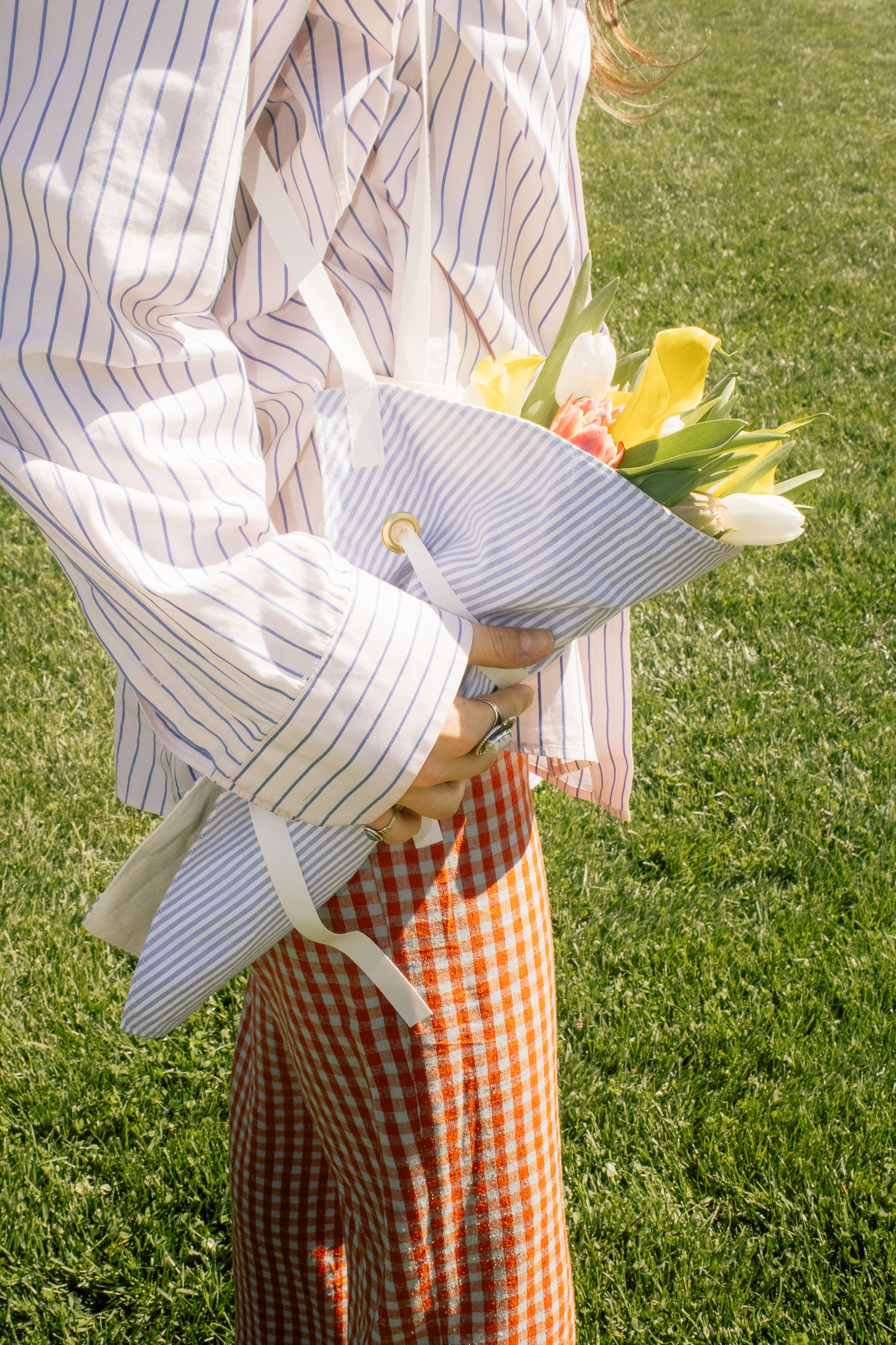 Crafted from a reclaimed button-down shirt, the Medium Stem Bag is designed to carry your blooms in style. Perfect for market trips or garden harvests, it comfortably holds medium to large arrangements and up to four bundles of stems.