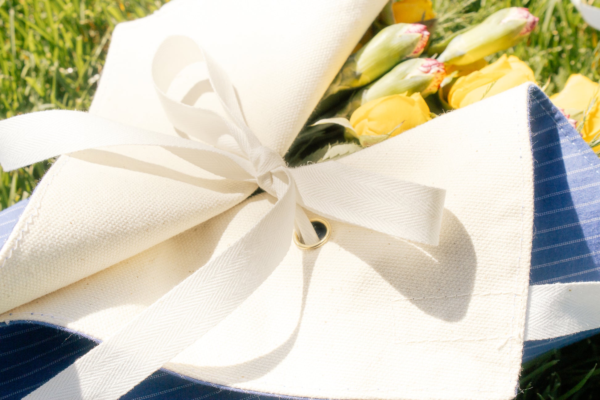 Featuring sturdy grommets and a wrap-around securing tie, your flowers stay neatly in place as you travel. The 1-inch cross-body strap makes it easy to carry, keeping your hands free for more stems.